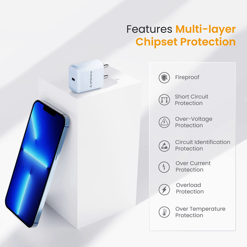 Multi-layer Chipset Protection - The charger comes with multi-layer chipset protection that protects against short circuits, over-voltage, and more.