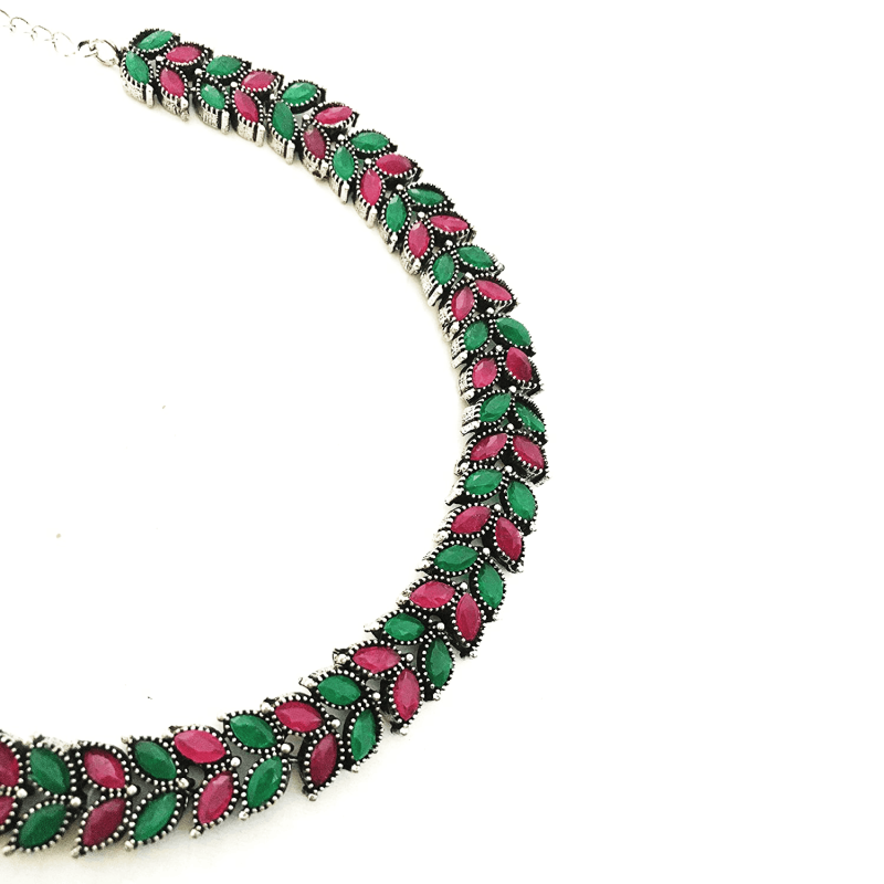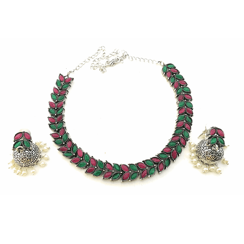 German Silver Stone Studded Oxidized Jewellery Set