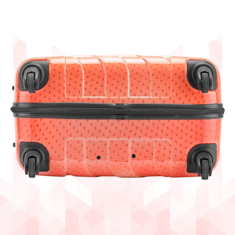 FEATURES : Number of Wheels - 4, Number Lock, No of Compartments -2, Adjustable Trolley, Hard Case Printed Design Trolley